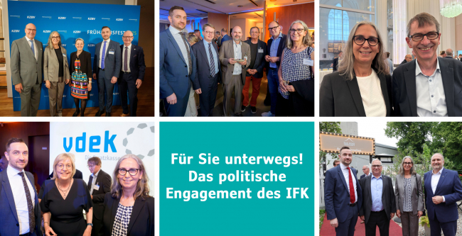 Nun könnte man meinen: Den Aufwand kann man sich aber auch sparen. „Könnte man sicherlich. Aber dann wäre der IFK auch schnell von der Bildfläche verschwunden. Und mit ihm die Interessen seiner Mitglieder. Für uns sind diese Einladungen immer ungemein wertvoll und wir freuen uns, dass wir zum Gästekreis gehören. Dies ist alles andere als selbstverständlich und zeigt, dass der IFK präsent ist und mitmischt“, bewertet Dr. Björn Pfadenhauer den Mehrwert dieser Treffen. Denn hier kommen verschiedenste Akteure aus der Gesundheitsbranche, Politiker und Vertreter aus Wissenschaft sowie Wirtschaft zusammen. Eine ideale Gelegenheit also, in den direkten Austausch zu kommen, auch einmal informelle Gespräche zu führen und außerhalb der großen politischen Bühne über die Herausforderungen in der Physiotherapie aufzuklären.