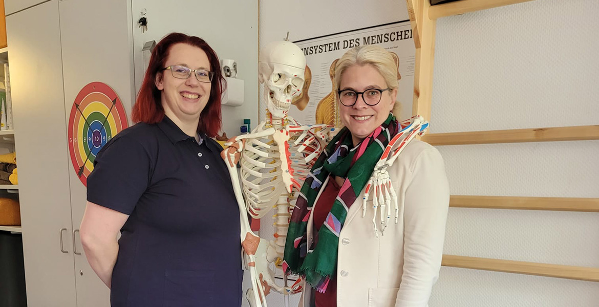 Verena Kämmerling, CDU-Landtagsabgeordnete für den Wahlkreis Osnabrück, hat Denise Girvan, Vorsitzende des IFK-Regionalausschusses Osnabrück, in ihrer Praxis besucht. „Es fand ein konstruktiver Austausch zur Akademisierung statt. Wir haben das Thema diskutiert und sind zu dem Schluss gekommen, dass ein Prozess ähnlich wie bei den Hebammen als Blaupause wie Akademisierung gelingen kann, denkbar wäre“, berichtete Girvan nach dem Besuch. Kämmerling äußerte sich im Anschluss auf ihrer Facebook-Seite, dass Vorteile der Akademisierung in der Physiotherapie ein einfacherer Zugang und die schnelle Behandlung von Patienten mit akuten Beschwerden seien.