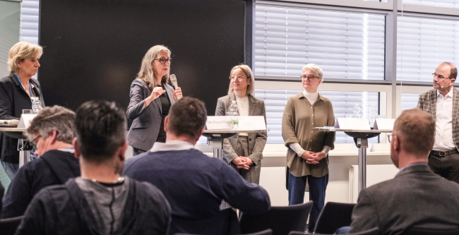 Ein berufspolitisches Highlight der Messe bot in diesem Jahr am zweiten Messetag wieder die Veranstaltung SHV konkret, zu welcher der SHV, der Spitzenverband der Heilmittelerbringer, einlud. Die Vorstände des SHV, dem auch der IFK angehört, standen bei diesem Format den Besuchern Rede und Antwort. Ein besonderes Augenmerk lag selbstverständlich auf der Bundestagswahl. Der Spitzenverband hofft auf entschlossenes Handeln, nach vielen Monaten unsteter politischer Verhältnisse, die in besonderer Weise die Gesundheitsbranche trafen. Frauke Kern, Vorstandsmitglied im Deutschen Bundesverband für Logopädie e. V., fand deutliche Worte: „Der SHV ruft in seinen Wahlprüfsteinen die Politik erneut dazu auf, eindeutig Stellung zu den Berufsgesetzen zu beziehen und endlich ins Handeln kommen!“ IFK-Vorstandsvorsitzende Ute Repschläger pflichtete dem in ihrem Statement bei: „Wir geben nicht auf, wir beginnen wieder von vorn. Und vielleicht schaffen wir es ja diesmal!“