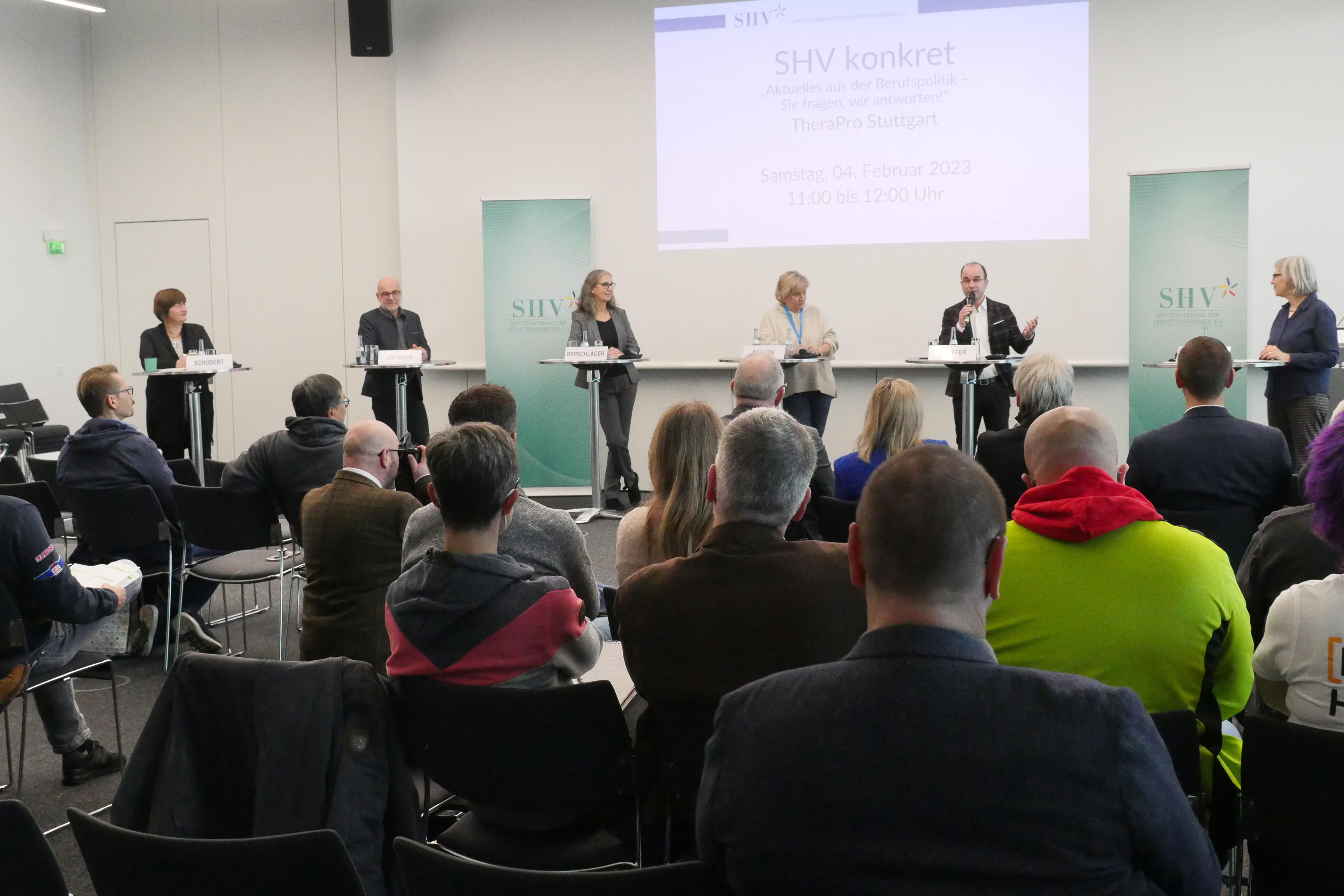 Schon lange etabliert, aber immer wieder aktuell: Beim „SHV konkret“ diskutierten am 4. Februar 2023 auf der TheraPro in Stuttgart in bekannter Manier die Vorstände der SHV-Mitgliedsverbände über aktuelle Entwicklungen in der Berufspolitik.