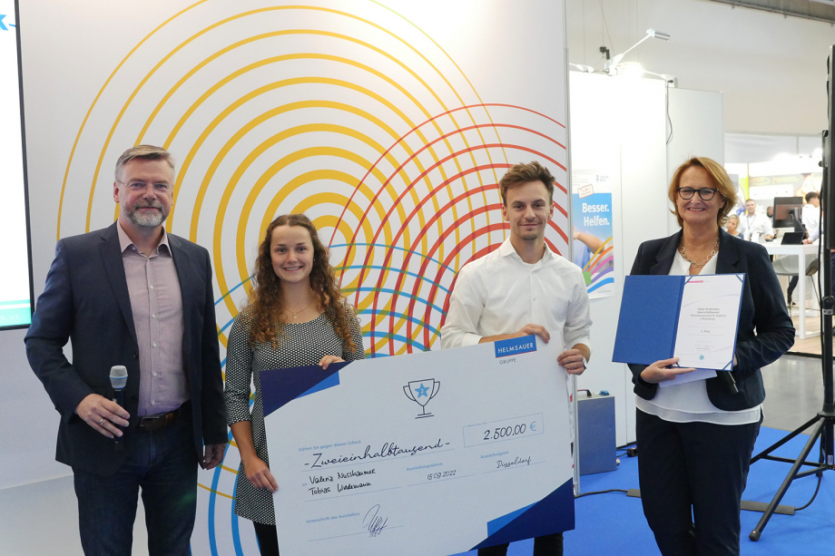 Auf der therapie Düsseldorf wurden am 16. September 2022 die Gewinner des diesjährigen Businessplan-Wettbewerbs gekürt. Die stellvertretende Vorstandsvorsitzende des IFK, Brigitte Heine-Goldammer, übergab die Preise an die erst- und zweitplatzierten Gruppen im Rahmen eines vom IFK organisierten Vortragsforums. Sieger des diesjährigen Businessplan-Wettbewerbs wurden Leander Schmid, Andrea Kals, Flora Stojkaj und Patrick Jahn von der SRH Hochschule Heidelberg, den zweiten Platz belegten Valeria Nußbaumer und Tobias Wiedeman von der Physiotherapieschule Dr. Kiedaisch in Ravensburg.