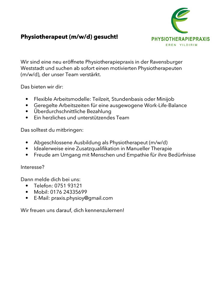Physiotherapeut (m/w/d) gesucht!
